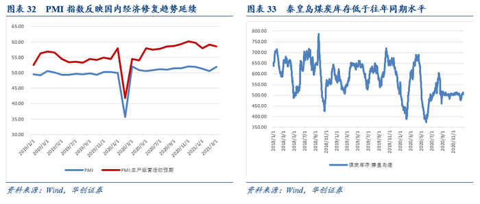 4-9月份:需求端缓慢复苏,供给走弱,煤价回升后企稳。需求方面,下游工业企业复工复产加速拉动需求回升;供给方面,5月起内蒙煤管票限制及“倒查二十年”反腐行动、陕西6月矿难引发安检停限产导致国内产能下降,叠加进口煤炭通关限制,供给走弱。需求端复苏带动煤价回升后企稳。