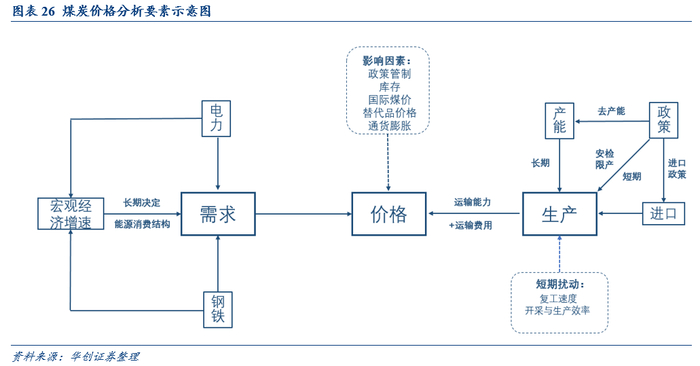 对煤炭行业的需求端趋势研判主要分为两部分,首先为国内经济增速,煤炭作为我国最重要的能源资源,其直接需求随来源于电力、炼钢等行业的用煤需求,但其终端需求实质来源于国内尤其是投资的增长;其次为能源结构的变化,科技进步加快,新能源和可再生能源如氢能源等的开发利用成本大幅下降,市场竞争力提高,对煤炭的替代能力增强。