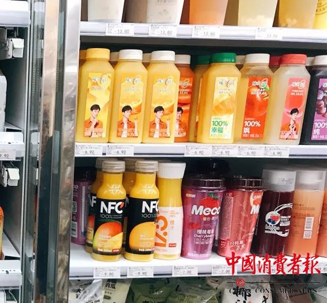 《中国消费者报》在北京线下商超及便利店看到,NFC果汁,因销售渠道不同,价格在7元-9.9元区间。NFC果汁产品价格要远高于普通果汁。
