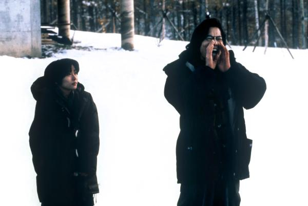 但要是没有秋叶先生,博子会不会去探究那封信的秘密?依她的性格,大概率是去不成小樽的。但是不去那里,他们之间的关系就永远不能往前迈进,永远隔着一位逝者。而生者,是永远不可能战胜逝者的。在雪山上,秋叶对着远处大喊:“藤井!你还在唱松田圣子的歌吗?那边会不会冷呢?博子现在是我的了!”然后,他自问自答:“好啊……好啊……好啊”。他转过头对博子说,“你看,他答应了。”