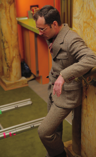 眼尖的观众也许已经认出导演第五部长片《穿越大吉岭》中三兄弟外套后背的半交带设计(对经典诺福克套装的致敬)。《布达佩斯大饭店》中的老年与青年作家都身着完整版诺福克套装。从维多利亚时期一直到 20 世纪 20年代,人们都普遍认为诺福克套装是一种运动服饰。银幕上——尤其是乡村以外的环境中——有一个人穿着诺福克套装,说明他是一位旅行经验丰富的绅士、一位远离自己故土的游子、一位和我们的作家相似的人,而与泽罗共度的宝贵时光改变了他的一生。