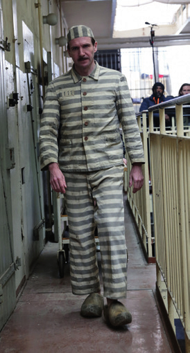 随着古斯塔夫从奢华传统的象征沦落为人人不齿的阶下囚,他也脱下自己的定制套装换上了条纹囚服——袖子太短,裤管在脚踝边晃荡,脚上则踩着一双沉重的木鞋。他似乎带着相对乐观的态度接受了这小小的不体面,甚至对随之而来的更大侮辱都不置一词;只是我们未免会好奇,总穿着克里姆特风格天鹅绒长袍的D夫人,若此时尚未离世,见到她一贯衣冠楚楚的情人如此落魄会做何感想。老妇人的华服象征着酒店文化的巅峰:那个充斥着聚会与香槟、四柱床与鹅肝酱的光彩年代。