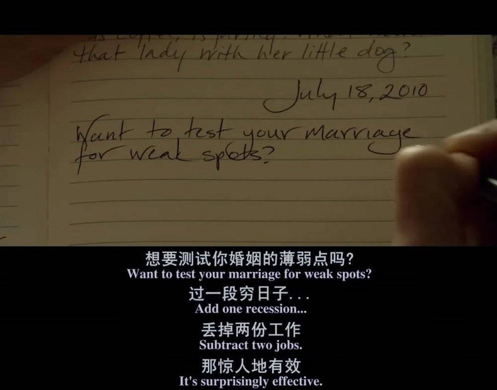 在这场自导自演的大戏中,她甚至杀了一个人。她说:自己做的这一切,都是为了Nick能回到当初她喜欢的样子(哪怕心知肚明电视上的他依然在假装)。
