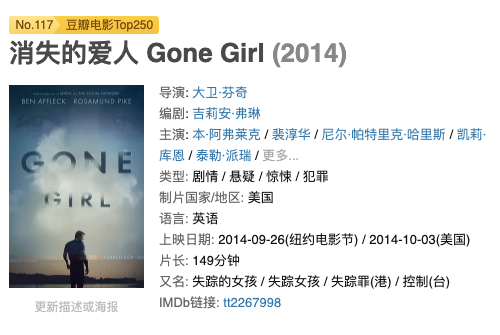 [美]吉莉安·弗琳,胡绯(译),《消失的爱人》,2017年5月,中信出版社