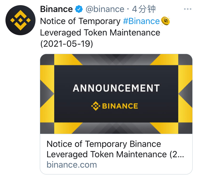 昨夜,币安曾发布通告称,已暂停 BTCUP、BTCDOWN、ETHUP、ETHDOWN、BNBUP、BNBDOWN 之外的所有杠杆代币的交易,并暂停所有杠杆代币的申购和赎回功能。交易、申购和赎回恢复时间将另行通知。