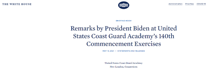 拜登5月19日在美国海岸警卫队学院发表演讲。