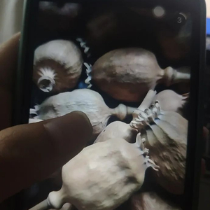 梁山让手下递给记者的纸袋中装有七八个白褐色、品相完好的罂粟壳,摇晃间可以听到罂粟籽摩擦的沙沙声。