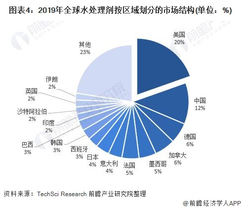 根据TechSci Research的数据,2019年美国水处理药剂市场约占全球水处理药剂市场份额的20%,亚太地区的市场份额约占31%,北美洲的市场份额约占31%,南美洲市场份额约占6%,欧洲约占25%,中东约占7%。