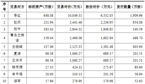 交易报告书显示,京城股份拟以发行股份及支付现金的方式向交易对方购买青岛北洋天青数联智能股份有限公司(以下简称“北洋天青”)80%股权,其中股份支付比例合计为60.09%,现金支付比例合计为39.91%。此次发行股份及支付现金购买资产的交易对方为李红等17名自然人及青岛艾特诺。
