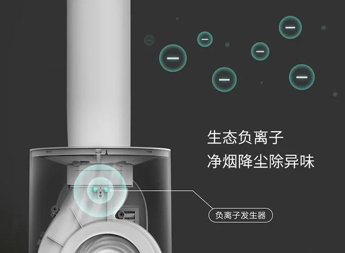 为解决这个问题,科西无叶扇在内部增加了一个负离子发生器。
