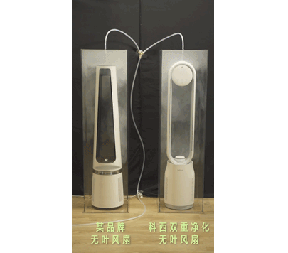 相比普通风扇吹出来的块状硬风。科西无叶风扇的风会更加连续、柔和。