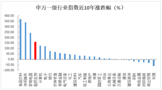 医药行业素有“牛股集中营”的说法,且长期表现令人称道。近5年、近10年申万一级行业涨幅居前列的行业中,医药分别排在第5(57.97%)和第4位(159.91%)(数据来源:Wind,数据区间为2011/4/1-2021/3/31)。