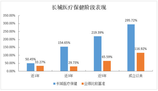 长城医疗保健(000339)近一年、近三年、近五年、成立以来的各阶段中投资收益皆领先业绩基准。其中,近三年、近五年的净值增长率分别为154.65%和219.39%,同期业绩基准分别为29.73%和65.59%,超额收益显著,在海通证券分类下的强股混合型基金中分列 15/435和13/377,获评海通证券三年期、五年期双五星评级。(数据来源:海通证券,评级时间为2021/4/30;排名数据截至2021/3/31)。
