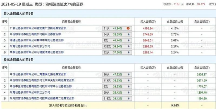 5月19日,知名游资席位东莞证券北京分公司以及中国银河证券绍兴等营业部纷纷现身该股龙虎榜卖方前五位,合计买入5034.90万元。