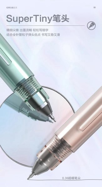 晨光优品Super Tiny笔头集合了全针管以及子弹头书写优点,实现0.38超精细书写