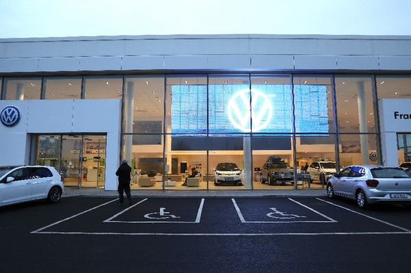 图为在爱尔兰首都都柏林拍摄的一家大众汽车经销商的外景。新华社发