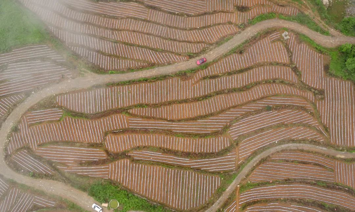 小满时节,在湖北省宣恩县珠山镇铁厂坡村拍摄的梯田(无人机拍摄)。新华社发(宋文 摄)
