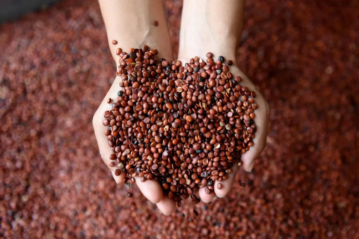 河北省内丘县东石河村村民展示加工好的酸枣仁。新华社发(邱洪生 摄)