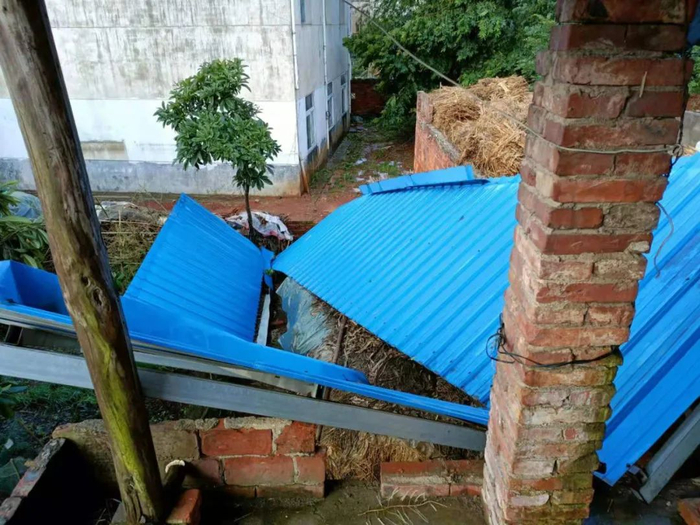 雷雨交加,前期的油菜还没来得及收割的,基本都被冰雹打没了。有个大户种的猕猴桃几百万,全部倒了,还有养殖的、种植的农户大棚都倒了。农房国家给免费买了保险,农业大户是自己上保险的。