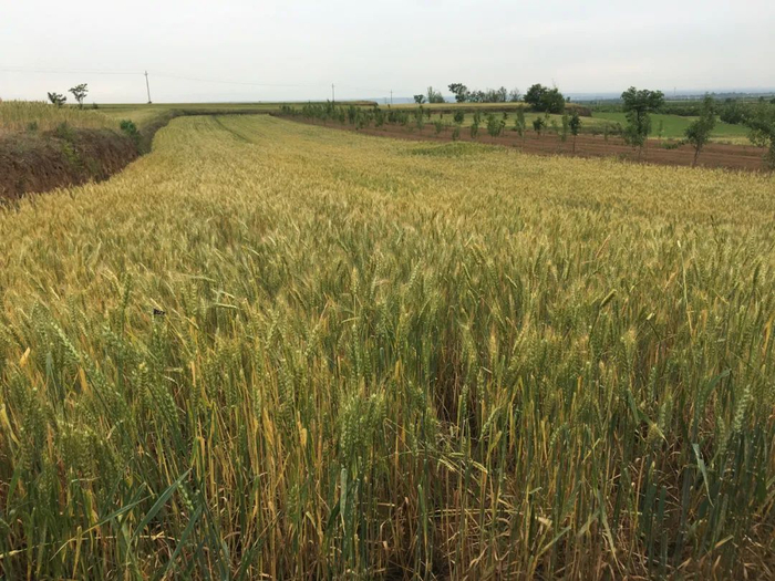 小麦进入成熟阶段,慢慢发黄了,6月1日前后开始收割。