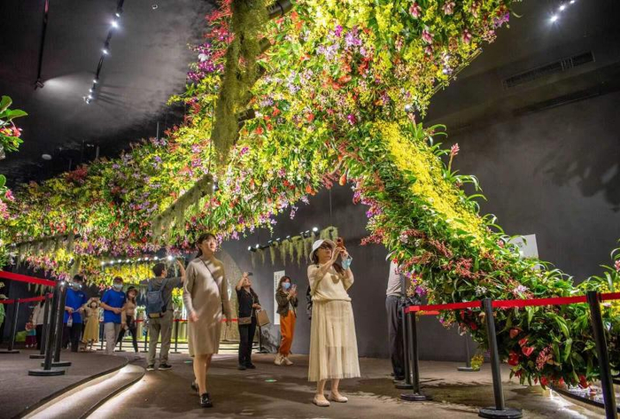 在兰园林下展区,游客可以行走在充满自然气息的木栈道上,走过蝶谷幽兰、兰品荟萃、层兰叠翠和文化长廊四个部分,感受洋兰的热情奔放、紫花海船的艳丽、兰花的娇俏浪漫、以及“生无桃李春风面,名在山林处士家”的兰花文化,体会“蝶之梦”“兰之梦”小型绿雕带来的如梦氛围。
