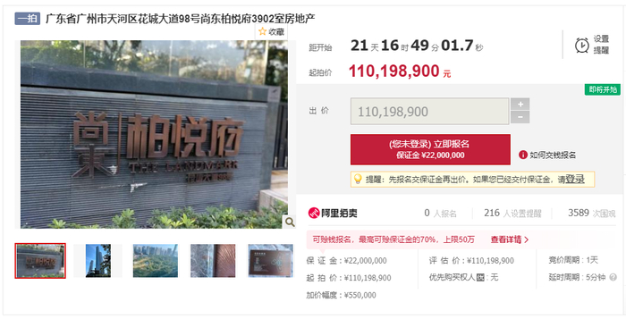 广州顶级豪宅1.76亿元司法拍卖 业主实控人系上市公司老板