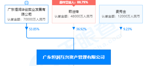 天眼查APP数据显示,广东恒润互兴资产管理有限公司成立于2015年,法定代表人赖淦锋。