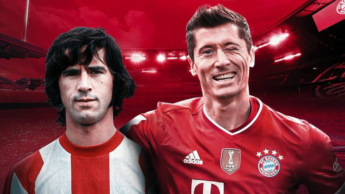 在本场赛前,德甲联盟专门制作了穆勒和莱万40球赛季的对比:49年前,盖德·穆勒在德甲同样大杀四方,但他却在那一年射丢了3个点球,否则他将创下更令后者望峰息心的产量。