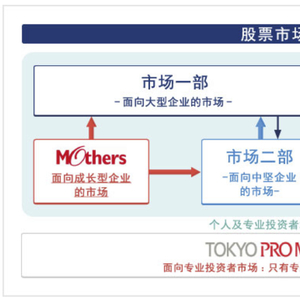 在东交所二部上市的企业占大多数,但是流动性非常高的企业也可以实现在市场一部上市。Mothers的上市企业在经历成长和发展后,可以申请转板至市场一部或者市场二部。