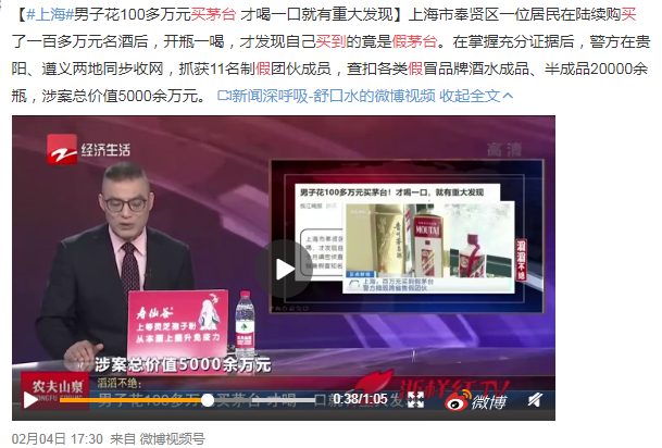 事实上,造假茅台早已成为产业链,不少人就在网上公开收购喝完之后剩下的空茅台酒瓶。
