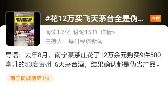 茅台,又又又上热搜了……不过,这次是假茅台。