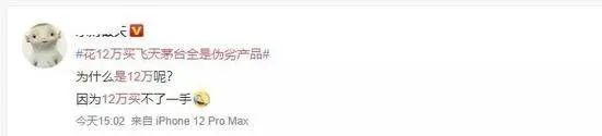 还有网友表示,“为什么花12万买到假冒茅台,那是因为12万买不了一手茅台股