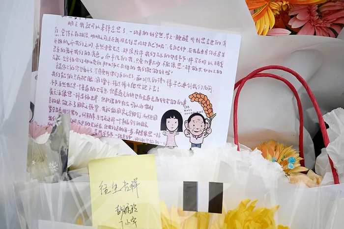 这位花店老板告诉记者:“这两天鲜花断货,从江苏订的花,今天凌晨2点送到店里,有一万多束,很快就被订购一空,订花的来自全国各地。”记者在现场看到,每束鲜花上都有一张卡片,上面写满了对袁老的缅怀哀悼之情!