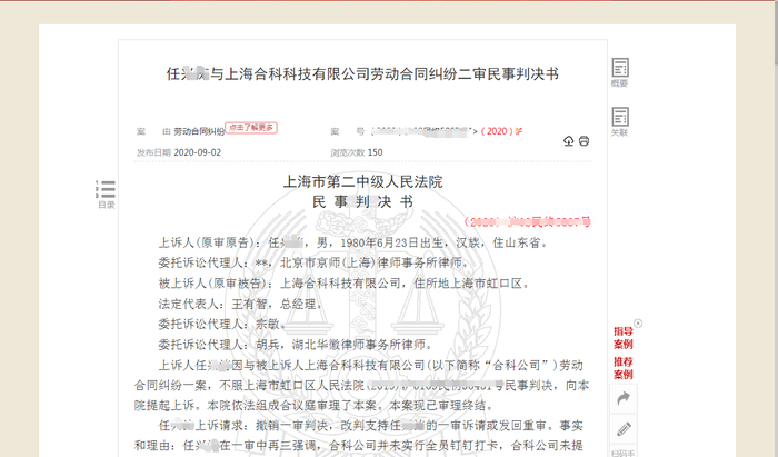 据中国裁判文书网官网披露的一则民事判决书显示,2012年2月19日,任某某入职上海合科科技有限公司,双方先后签订过期限为2013年2月20日至2015年2月19日、2017年2月19日至2019年2月18日、2019年2月19日起无固定期限等多份劳动合同。从事销售,常驻北京工作。
