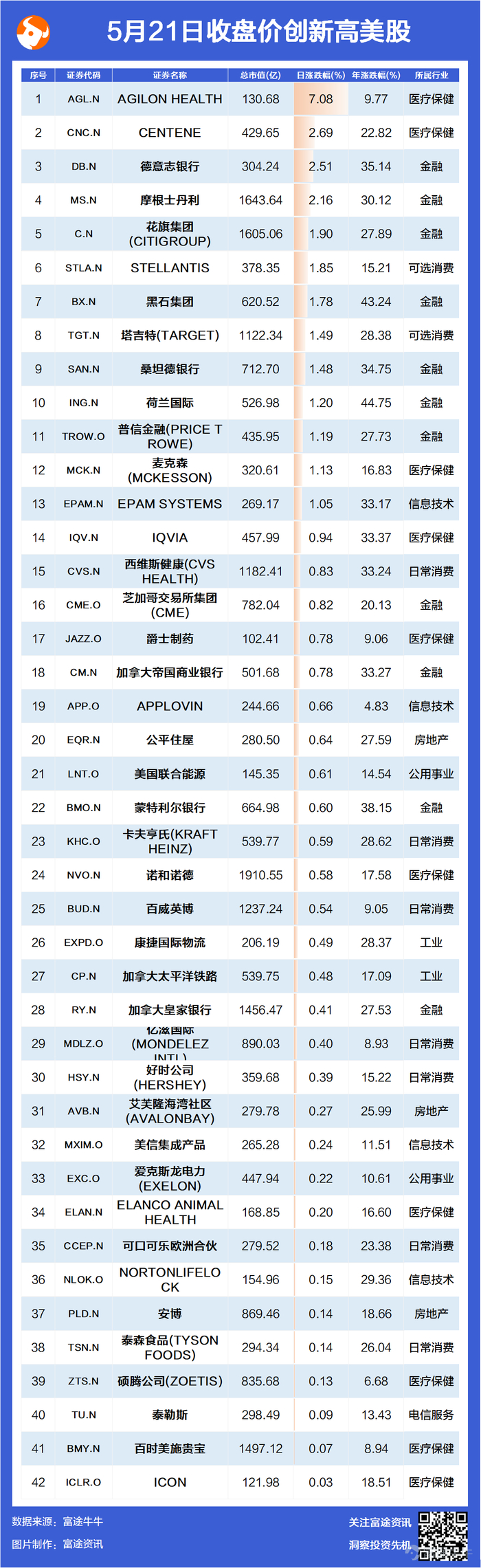 【美港股牛股跟踪】 每天更新美港股股价创52周新高的股票,为您梳理每日新高牛股表格,探明新高个股,助您尽早抓住牛股踪迹,发现更多投资机会!欢迎广大牛友关注哦~