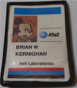 C语言白皮书的作者之一Kernighan则用米老鼠作为自己的工牌头像,还戴着它去跟比尔盖茨开会。