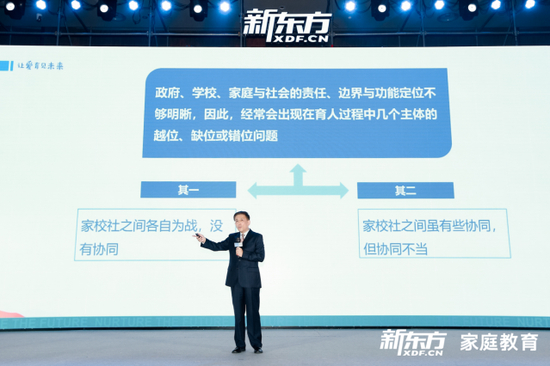 2021新东方家庭教育春季高峰论坛的演讲嘉宾们对家庭教育相关话题的深度解读和思想碰撞,为在座来宾及观众们解答了心中的疑惑,助力后疫情时代家庭教育的发展,为中国家庭提供家庭教育解决思路,为社会各界精英人士搭建分享交流平台,为促进新时代父母建立科学的儿童观、教育观、家庭价值观贡献了力量并推动着家庭、学校、社会三方共同关注和参与家庭教育的格局。