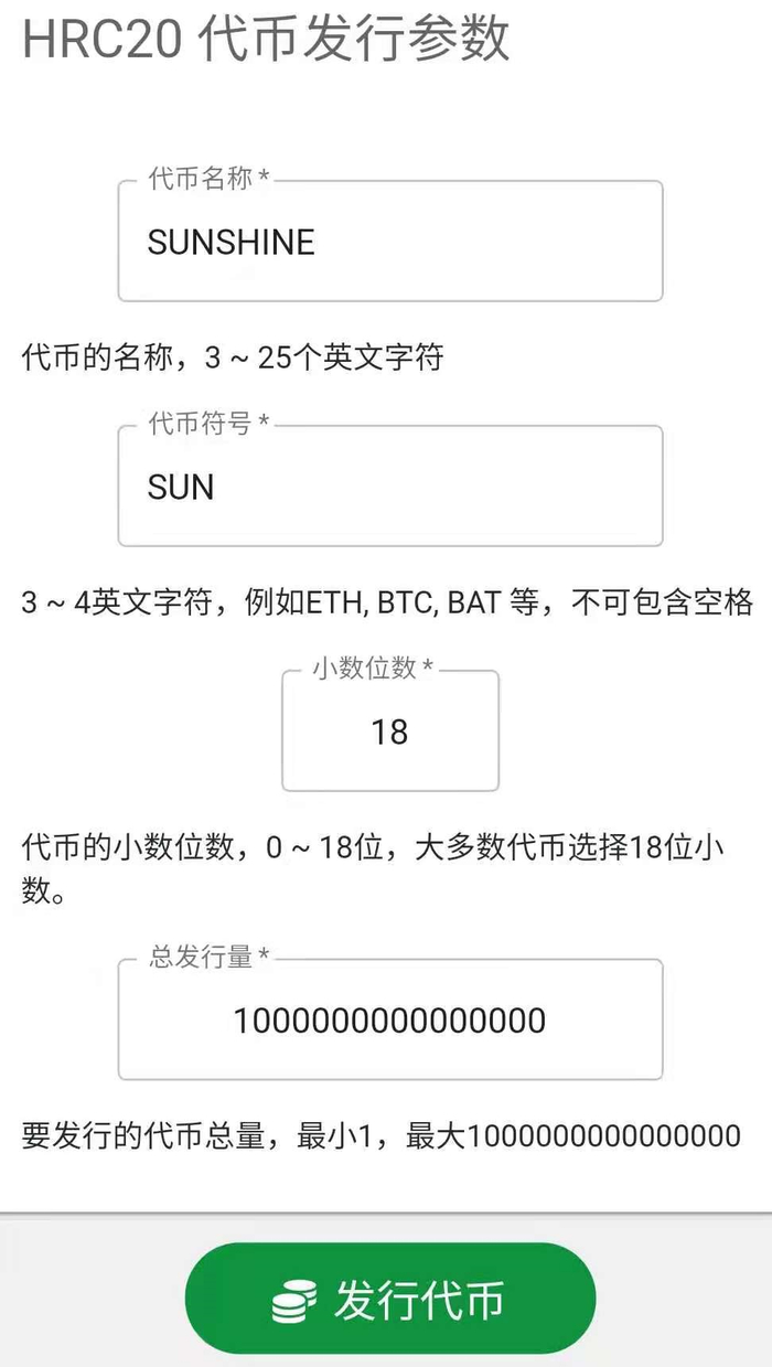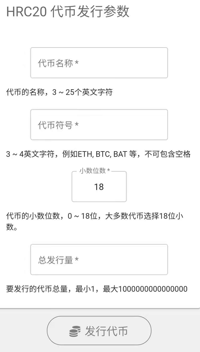 就拿这个支持火币生态链 HECO 的网站为例,大伙们需要输入的,其实就是代币名称、代币符号、还有发行量这几个数字。