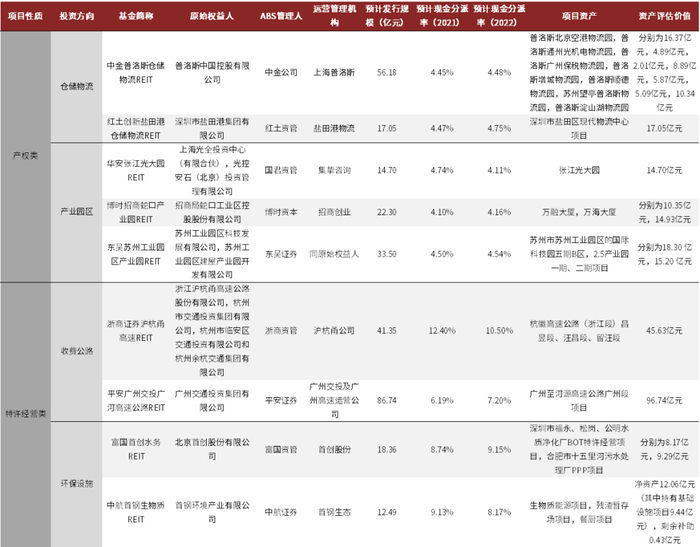 根据基金公开披露的公告,在现金分派上,特许经营类项目的预计现金分派率普遍高于产权类项目,21-22年预计现金分派率普遍在6%-12%的区间内,但不同项目间差异较大;产权类项目近两年的预计现金分派率在4-5%之间。