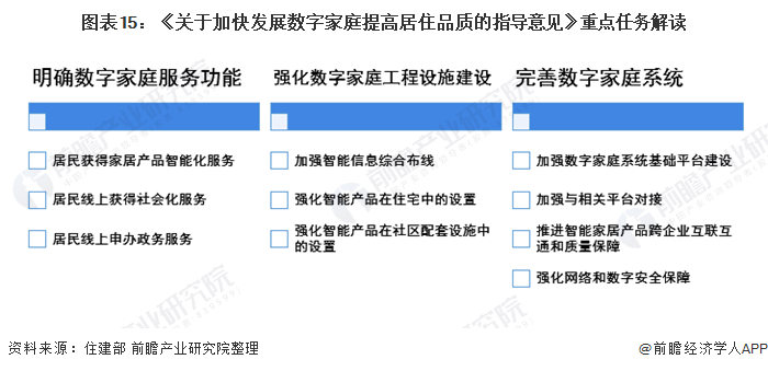 同时,《意见》明确了以下三个方面的重点任务,是“十四五”期间我国智能家居行业的重点发展方向: