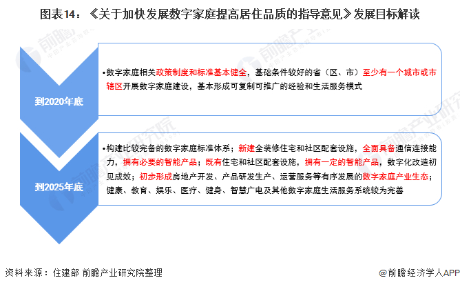 到2025年底,构建比较完备的数字家庭标准体系;新建全装修住宅和社区配套设施,全面具备通信连接能力,拥有必要的智能产品;既有住宅和社区配套设施,拥有一定的智能产品,数字化改造初见成效;