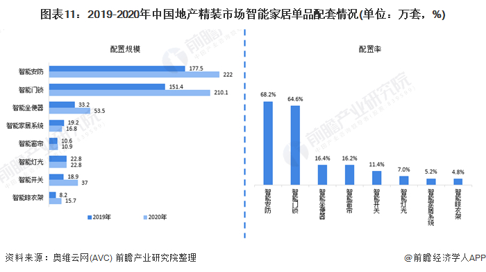 根据奥维云网公布的数据显示,2020年,在我国地产精装市场中,智能安防、智能门锁的配置率已达60%以上,配置规模分别为222万套、210.1万套,较2019年同期均有大幅提升。