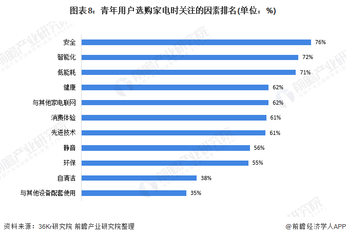 而根据36Kr研究院公布的《2019十大巢流生活用户调研报告》显示,71.5%的青年人群选购家电产品时,首当其冲的考虑因素是“安全”,有76%的调研者选择该项;其次才是家电的“智能化”水平,可以看出,“安全性”应当是智能家电乃至整个智能家居设备厂商最应重视的产品点。