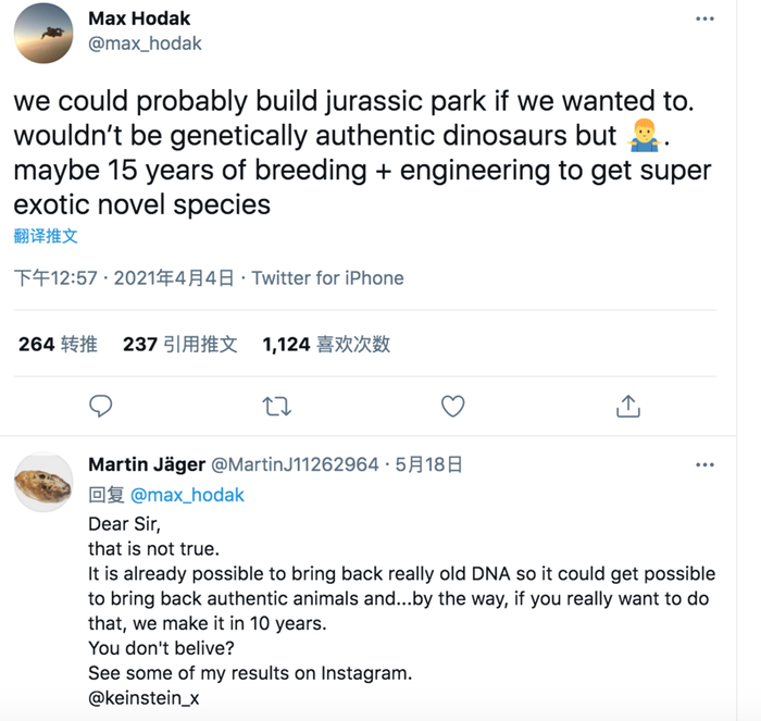 所以说,马斯克的同僚们提到的复活“恐龙新物种”,单纯就是一个不用考虑可实施性的想法。这样的脑洞,普通人也可以提出1到2个,但对于合理评估和看待基因编辑技术的发展而言,这样的脑洞是不负责任的。