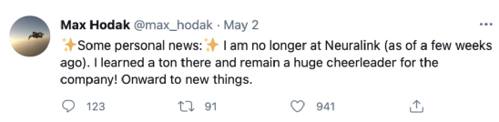 然而,五月这位联合创始人宣布,目前自己已从Neuralink公司离职,并且称未来方向不是侏罗纪公园。