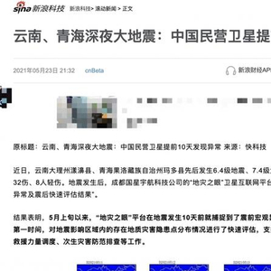 5月21日晚云南大理州漾濞县发生6.4级地震,成都国星宇航科技有限公司公开宣称,该企业的“地灾之眼”卫星互联网平台,在震前10天就发现了当地长波辐射宏观异常,并表示观测到“宏观异常与此次地震发生存在相关性”。