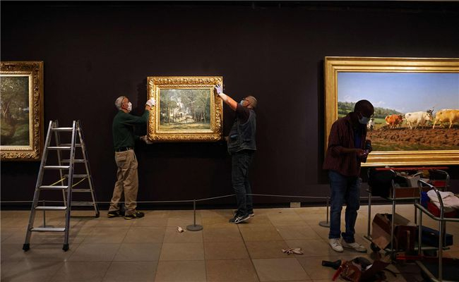 奥塞博物馆恢复开放前夕,博物馆工作人员进行准备工作。