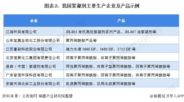 目前,我国已经成为絮凝剂产品全球第一大产销国,全国现有絮凝剂生产厂商百余家。国内生产絮凝剂的重点厂商有江海环保有限公司、山东宝莫生物化工股份有限公司、江苏富淼科技股份有限公司、安徽天润化学工业股份有限公司、北京恒聚化工集团有限责任公司、爱森(中国)絮凝剂有限公司、三门峡弘奥生物科技股份有限公司、中国石油大庆炼化公司等。