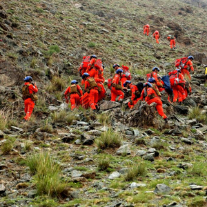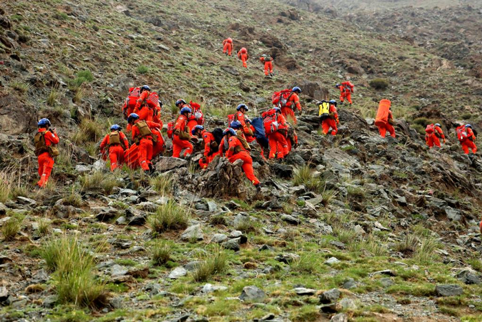 5月23日,救援人员在甘肃景泰山地越野赛事发区域展开搜救。新华社发(甘肃省森林消防总队供图)