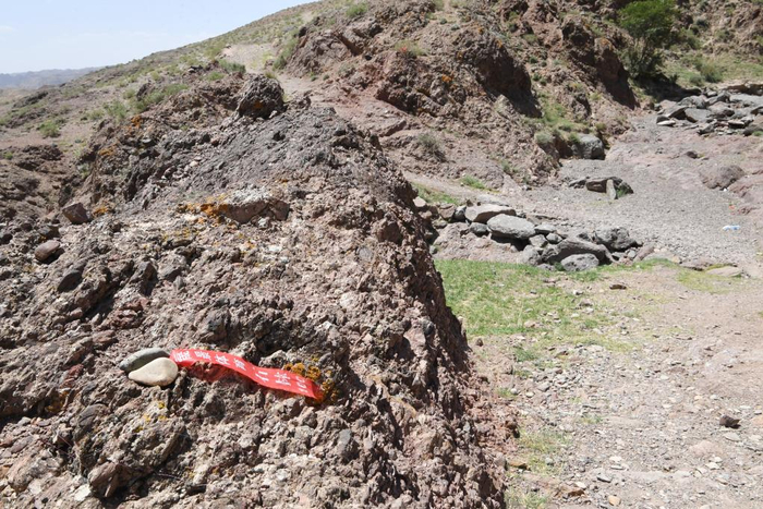 5月24日,甘肃白银市景泰第四届黄河石林山地马拉松百公里越野赛的CP2至CP3赛段沿途。新华社记者范培珅摄